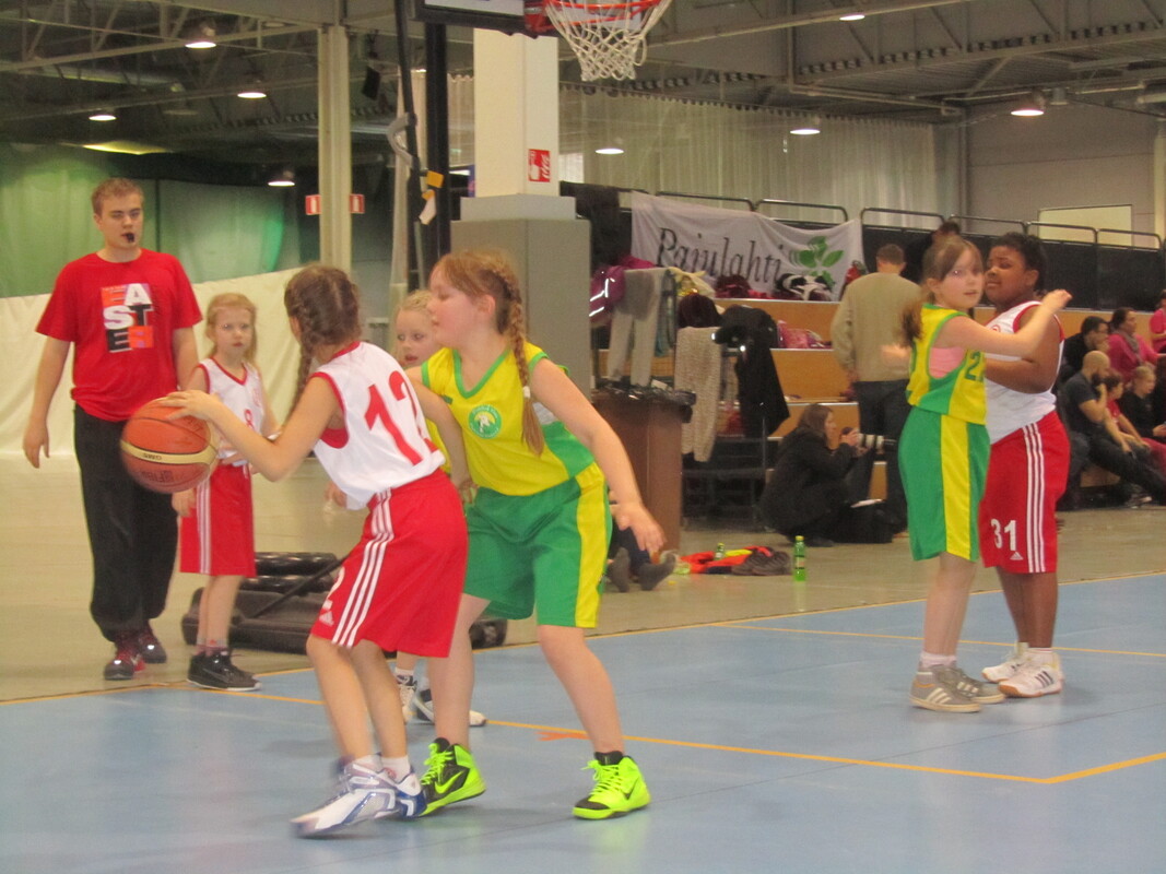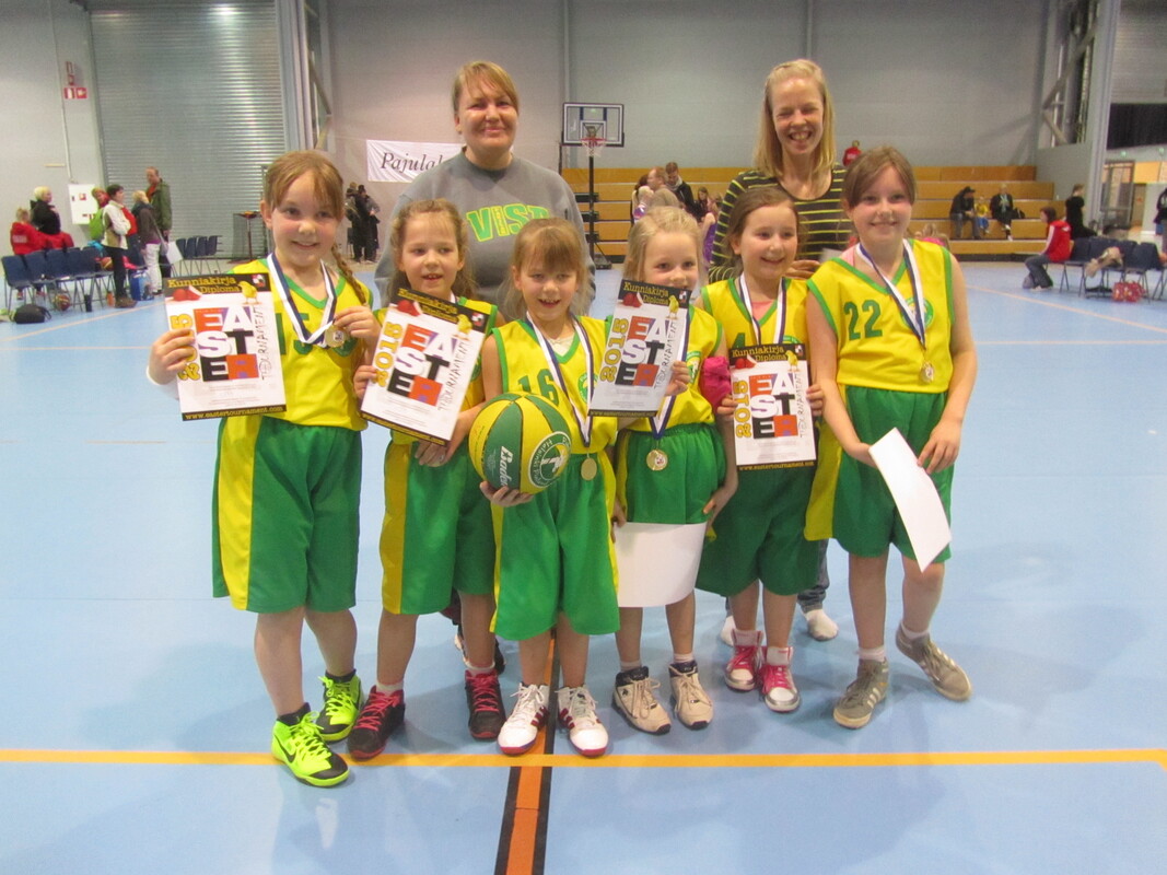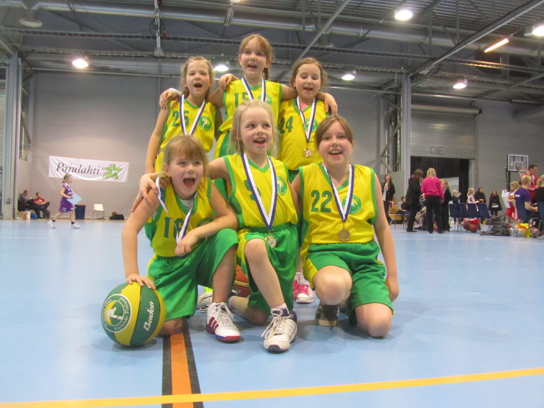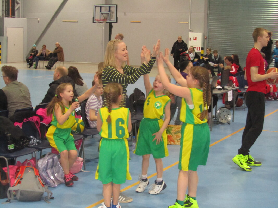 Visan 06-tytöt viettivät pitkän perjantaipäivän, siis pitkäperjantain, koripallon merkeissä Easter Tournamentissa Lahdessa. Tuomisina oli 3 voittoa, 1 tappio, kirkkaat mitalit ja kipeät jalat. Aamutuimaan oli jännitystä heti ilmassa, kun vastassa oli Tampereen Pyrintö Williams ja visalaisia paikalla vain neljä. Mutta ei hätää! Turnaus pelattiin 4 vs 4 ja Mimmin, Millan, Lauran ja Veeran otteet olivat niin varmoja ja riemukkaita, että voitto irtosi 38-26. Toiseen peliin EBT:tä vastaan saatiin jo Nelly ja Sarakin mukaan ja vahvistuksia vauhdikkaassa ottelussa todella tarvittiinkin. Visalaisten voittoputki jatkui lukemin 36-22. Kolmas ottelu oli turnauksen kovinta joukkuetta, Panttereita vastaan. Hyvä taistelu jälleen, mutta rajut pallonriistäjät, Pantterit, voittivat 36-14. Katsojat luulivat, että viimeisessä pelissä eivät tytöt enää paljoa jaksa juosta, olihan tulossa jo neljäs peli kahdeksan tunnin sisään. Miten väärässä he olivatkaan. Ensimmäinen erä Pyrintö Lehtoa vastaan meni tasalukemissa, mutta sitten visalaisten vauhti vain lisääntyi ja lopulta pelin päättyessä tulostaululla komeilivat Pakilan Visan voittolukemat 36-17. Villit voitonhuudot kaikuvat Lahden Messuhallissa, kun joukkuekuvia otettiin kirkkaat mitalit kaulassa. Visan tyttöjen sijoitus oli kymmenen joukkueen sarjassa kolmas. Pelien välilläkään tytöt eivät malttaneet olla pompottelematta ja heittelemättä, mutta pari ateriaa sentään ehdittiin kisaruokalassa nauttia. Myös Lahden tärkein nähtävyys, mäkihyppytornit, käytiin tarkastamassa. Ihan huipulle ei päästy, mutta osa porukasta kipusi tuomaritorniin asti. Hieno turnaus ja vaikka melkoisen maratonin päivän aikana juosseet jalat olivat illalla lähes setsuuria, iloitsivat tytöt siitä, että sunnuntaina pääsee taas treeneihin! |