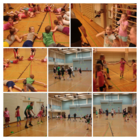 Visan mikrotyttöjen kevään viimeiset treenit olivat melkoinen yleisömenestys, kun pelaajien lisäksi parikymmentä vanhempaa ja sisarustakin pääsi kokeilemaan koriksen hienouksia. Ylä-Malmin peruskoulun salissa nähtiin hurjaa menoa, kun mikrotytöt haastoivat vanhempansa treenaamaan. Ohjelmassa oli hippaa, pallonkäsittelyä, parikisailuja, heittokisoja, pompotusta, syöttelyä, heittoja, pelaamista ja tietysti toffeeta. Vanhempien hikisistä ilmeistä huomasi treenien jälkeen, että kyllä se koripallo vaan on kova, mutta hauska laji! |