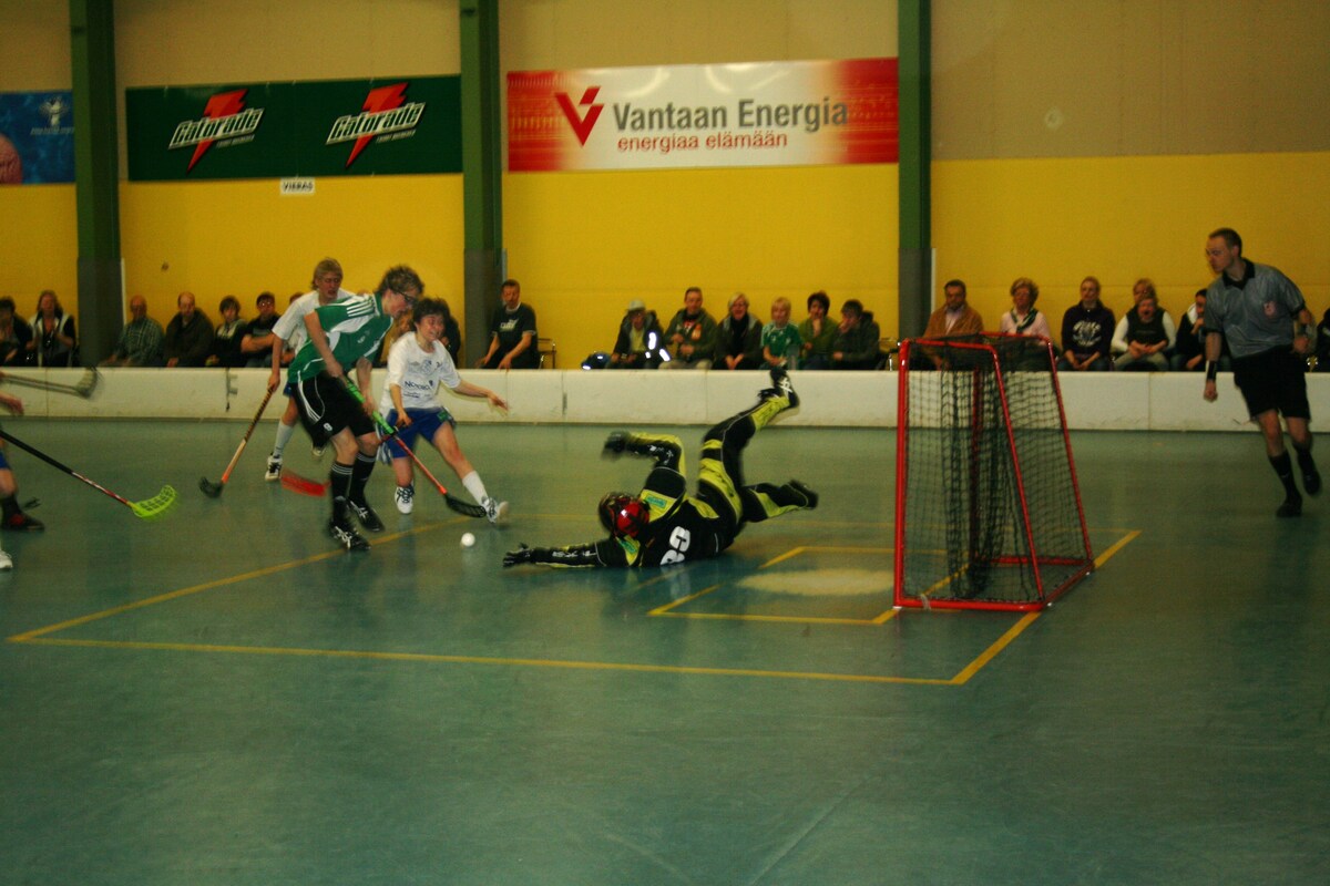 PakVin 96-pojat löivät kolmannessa ja ratkaisevassa välierässä LFT:n vakuuttavin luvuin 11-3 (3-3, 1-0, 7-0) Forssan heikon esityksen jälkeen pelattiin heti sunnuntaina sarjan katkaiseva välierä Campossa. Voittaja pelaisi pitkäperjantaina loppuottelussa TPS:aa vastaan ja hävinneen taival jatkuisi pronssiottelulla Classicia vastaan. PakVi huudatti kotiyleisöä ajassa 7.17 aloittamalla maalinteon. Kaius Klemetti katkaisi LFT:n hyökkäykseenlähdön ja pelasi pallon Aaro Astalalle, joka vei PakVin johtoon maalin edestä. Johto kesti vain erän puoliväliin, Jere Jaatelan rikottua maalipaikkaan päässyttä LFT-hyökkääjää. Rangaistuslaukauksesta LFT tasoitti ottelun. Heti seuraavassa vaihdossa PakVI joutuikin takaa-ajajan asemaan, kun Niko Vanhala PakVin maalinsuulla antautui toistamiseen lyhyen ajan sisään. Maaleja iskettiin erän puolivälin jälkeen nopeaan tahtiin, 3-3-tilanteeseen asti tehtiin maali vaihtoa kohden. Miska Mäkinen käytti LFT:n puolustajia pujottelukeppeinä kulmavaparin jälkeen ja kahvitti maalivahdinkin, tilanne 2-2. Toisessakin päässä verkko heilui kulmavaparin seurauksena, kun PakVi ei seurannut tilannetta loppuun ja loppilaisten puolustaja pääsi laukomaan LFT:n taas johtoon. Taas seuraavan vaihdon jälkeen peli oli tasan, kun Arttu Häkkinen palsi pallon Kaius Klemetille, jonka tolppalaukauksen iski maaliin toistamiseen Aaro Astala. 3-3-tilanteessa joukkueet lähtivät pukuhuoneisiin erätaukoa viettämään. Ensimmäinen erä oli ainakin kahden minuutin ajan erittäin tapahtumarikas, mutta toinen olikin sitten täysi vastakohta. Ensin Kaius Klemetti laukoi Aaro Astalan syötöstä yläriman kautta PakVin voittomaaliksi jääneen neljännen osuman. PakVin alivoima ei toiminut lauantaina Forssassa, mutta toistuvasta väärästä pelitavasta joukkueelle tullut kaksiminuuttinen, jonka Aaro Astala kärsi, selvittiin takaiskuitta. Toiselle erätauolle mentiin samoissa 4-3-lukemissa kuin ensimmäisessä ottelussa. Kolmanteen erään lähdettäessä ei PakVi enää halunnut selkeästi päästää LFT:tä mukaan voittotaisteluun. Heti erän alkuun Sebastain Dahlström pelasi Miska Mäkisen esityöstä PakVIn viidennen maalin. Ajassa 43.13 akseli Klemetti-Astala rankaisi jälleen loppilaisia, tällä kertaa Kaius pääsi kävelemään kulmasta vetopaikkaan ja laukoi tilanteeksi 6-3, jolloin LFT otti aikalisän. LFT:n selkäranka alkoi taittua, kun Arttu Häkkinen pääsi Tuomas Harjulan avauksesta läpiajoon ja harhautti maalivahdin kebabkioskille. LFT sai tämän jälkeen luotua pientä painetta PakVi-päätyyn, mutta kuin varkain Kaius Klemetti pääsi läpi, ja maalivahdin torjuttua eteensä oli Aaro Astala jällee paikalla iskemällä pallon verkon perukoille jo kolmatta kertaa. Loppuerä kaunisteltiinkin lukemia. Erittäin hyvällä pelipäällä olleet Klemetti ja Astala värkkäsivät kaksi maalia, joista toisen ylivoimalla, ja viimeisen maalin Astala teki Sebastian Dahlströmin syötöstä, myöskin ylivoimalla. Viimeinen erä PakVille 7-0 ja koko ottelu 11-3, niinpä PakVi taistele pääsiäispyhinä SM-kullasta Turun Palloseuraa vastaan. Vaikka ero repesikin loppua kohden, oli kolmannen erän näytös myös PakVin hyvän, uhrautuvan ja ehyen joukkuepelin ja kovan taistelun ansiota - Forssan Rehti-Arrenalla nähty lauma yksilöitä oli hitsautunut yhden yön aikana takaisin Joukkueeksi isolla J:llä. Tästä on hyvä jatkaa. Pitkäperjantaina 22.4 Ruskeasuon Arena Centerillä kello 14.30 alkaa finaalisarja PakVi - TPS. Tervetuloa katsomaan.