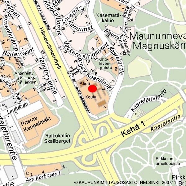 Leiri 1:n keskuspaikkana toimii Suomalais-venäläinen koulu Maununnevalla os. Kaarelankuja 2 (klikkaa hiirellä kartta suuremmaksi).