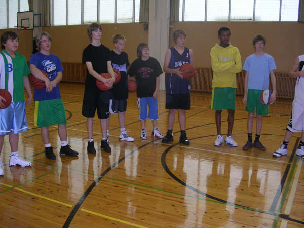 Torpan Poikien miesten edustusjoukkueen Panu Majala vieraili valmentajan roolissa B-poikien korisharjoituksissa lauantaina 11.10. Panu kertoi pojille oman koripallotaustansa lisäksi mm. sitoutumisesta harrastukseen, treeneissä käymisestä, tavoitteiden asettelusta, sekä joukkuehengen ja -pelaamisen merkityksestä. Aina harkkohin ei kerkiä, mutta silloin kun tullaan paikalle, niin treenit on vedettävä oman parhaansa mukaan tosissaan. Harkkoihin tullaan ajoissa ja jokaisen on oltava valmiina harjoittelemaan, kun harjoitukset alkavat tähdensi Panu tarkasti kuunnelleille pojille. Koulu pitää kuitenkin olla ykkösasiana ennen harrastuksia. Heittoja olisi hyvä käydä kaveriporukalla harkkojen ulkopuolella harjoittelemassa.Itse harjoituksissa 203 cm Panu piti pojille harjoitukset, joissa käsiteltiin mm. miesvartiointia, levypallojen "ryöstöä" ja oikeaa heitto- ja syöttötekniikkaa. Panu kiitteli poikia ja kehui joukkueen henkeä. Vaikka joukkueessa on eritasoisia pelaajia, niin jokainen otetaan mukaan ja kaikille syötellään. Palautetta tuli etenkin sulkemisesta, jota täytyy ruveta tosissaan harjoittelemaan. Myös screenistä avautumista olisi syytä harjoitella. Toivottavasti näemme Panun keväällä tarkastamassa poikien kehityksen. Meneeköhän oppi perille? |