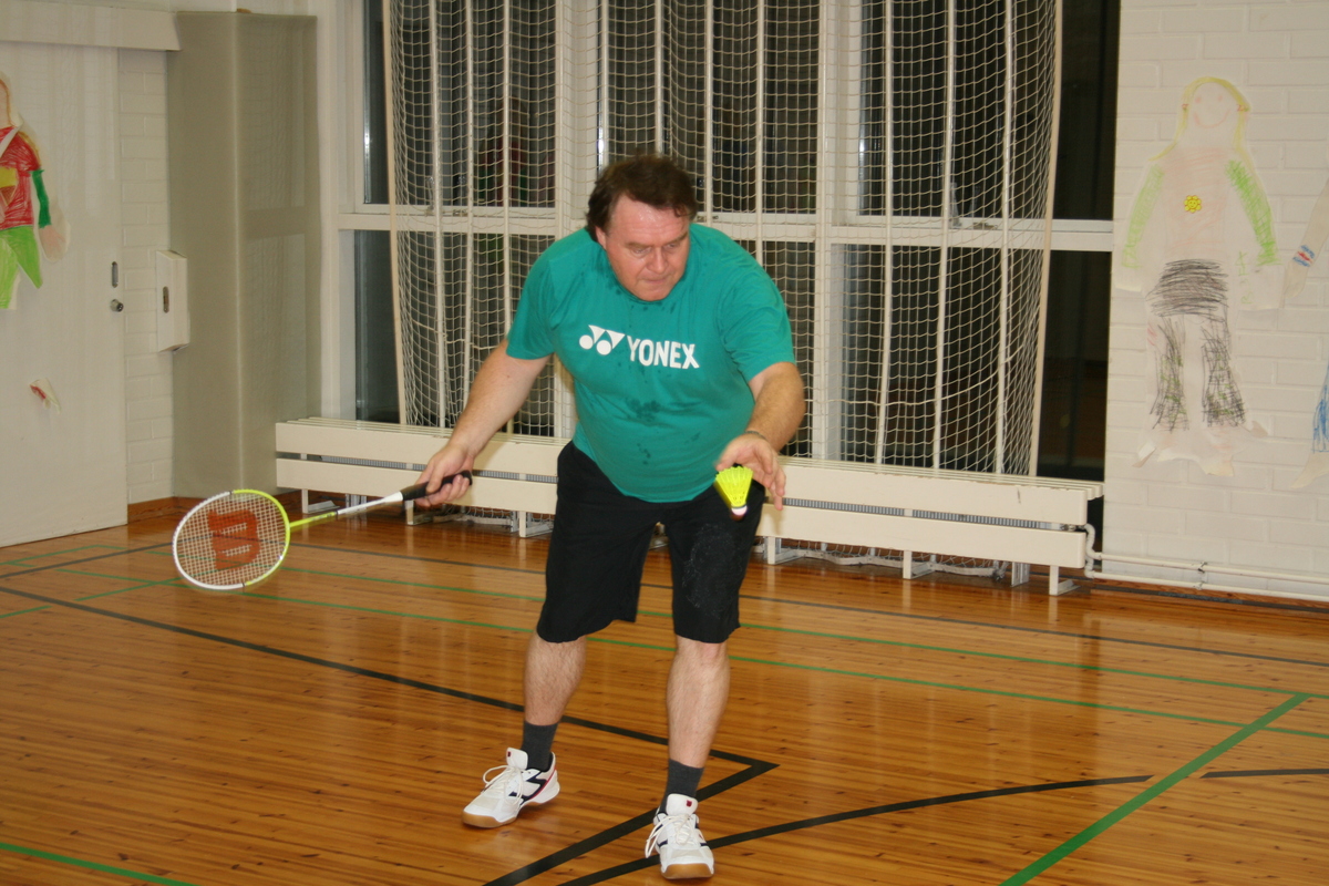 Kuntoilumuotona yksi parhaimmista, voisi kuvata menoa, kun seuraa Pakilan Visan innokasta sulkapalloporukkaa. Miehet ahertavat salilla ja heiluvat mailan kanssa siihen tahtiin, että paidat ovat hetkessä hiestä märkinä. Jo usean vuoden ajan ovat nämä miehet kokoontuneet Torpparinmäen sivukoululle omaa kuntoansa kohottamaan. Jopa niin innokkaasti, että tälle kaudelle miehet halusivat toisen viikottaisen vuoron. Porukan vetäjä Jorma Peltonen on tyytyväinen, sillä sopivasti töiden jälkeen ehtii salille. Porukka pitääkin tärkeänä sitä, että paljon autoa ajavina aina välillä pääsee iroittelemaan oikein kunnolla kipeytyneitä lihaksia toisistaaan. Ja hauskaakin on, sillä välillä peli näyttää niin taidokkaalta, että sivullisen ihan kateeksi käy. |