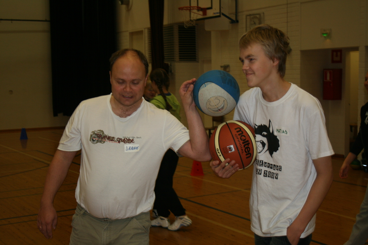 Pakilan Visa järjesti ohjajille yhteistyössä ESLU:n kanssa Pallotellen liikuntakoulutuksen. Kuuden tunnin ajan Pukinmäen peruskoulun liikuntasalissa ahertivat lähinnä Visan pienempien lasten ohjaajat ja valmentajat. Mukana oli ilahduttavasti myös uusia ohjaajan uralle pyrkiviä nuoria. Koulutuksesta vastasi Marjatta Pekkala SLU:sta. Päivän aikana tutustuttiin monipuolisesti siihen, mitä kaikkea erilaisilla palloilla voi tehdä lasten ja miksei aikuistenkin liikuntaharrastuksissa. Erilaiset kilpailut ja leikit kiehtovat lapsia. Ohjelmassa olikin runsaasti esim. koripalloharjoituksiin soveltaen sopia harjoitteita. Ja mikä parasta, ohjaajat saivat tässä koulutuksessa toimia demoryhmänä, joten hauskaa ja erilaisia haasteita riitti lähes koko päivän ajaksi innokkaalle ohjaajajoukolle. |