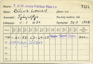 Pakilan Visan arvokkaat, alkuperäiset jäsenkortit ovat myös historiankirjoittajan käytössä. Lennart Silius kuului Pakilan Visan perustajiin 1936. Visa ehti toimia vain muutaman vuoden ennen sota-aikaa. Marraskuun 30. päivä 1939 alkanut talvisota vei miehet rintamalle ja hiljensi suomalaisen urheiluelämän. Visaa johti puheenjohtaja Erkki Öhmanin ollessa rintamalla varapuheenjohtaja Lennart Silius. Talvisodan jälkeen toiminta vilkastui vähitellen kevään 1940 aikana.
