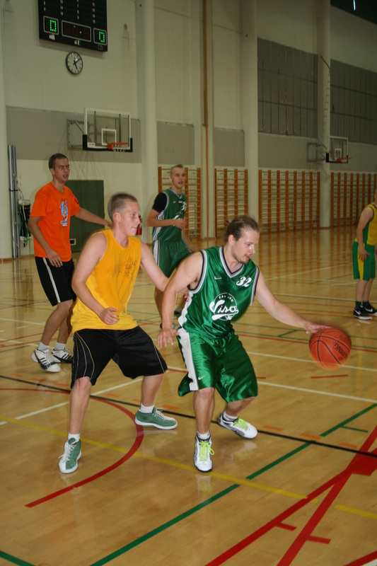 Pakilan Visan kolme miesten koripallojoukkuetta ratkaisivat seuramestaruuden sunnuntaina 11.9. Mäkelänrinteen uintikeskuksen salissa pelatussa turnauksessa. Jännittävien pelien jälkeen voittaja saatiin selville ja uudelle kiertopalkinnolle koti vuodeksi. Pakilan Visa 1 - Pakilan Visa 36ers 68 - 57 Visan miesten 1 -joukkueen ja 36ersien ottelu käynnistyi vauhdikkaasti kummankin joukkueen totutellessa kesäkauden jälkeen tuomareiden edessä pelailuun. Alun onnistumisien jälkeen Miesten Ykkönen jäätyi hyökkäyspäässä 36ersin puolustuksen edessä. Monien pallonmenetysten ja riistojen lopputuloksena 36ers pääsi nopeisiin hyökkäyksiin ja nostelemaan helppoja koreja ajojen päätteeksi. Toisella neljänneksellä 36ers jätti Miesten 1:sen hyvällä puolustuksella 7 pisteeseen. Puoliajalle mentiin 36ersin 37-23 johdossa. Puoliajan jälkeen valmennusjohto onnistui valamaan Ykkösen hyökkäypään hurmokseen. 36ersin heittopelin takerrellessa neljännes meni Ykköselle 28-8. Viimeinen neljännes taisteltiin tasaväkisesti. Miesten ykkönen onnistui pitämään johtonsa otteluun loppuun asti. Parhaat pisteentekijät: Miehet 1: Kimmo Nurminen 17 p Esa Tiusanen 17 p Petri Lehtimäki 11 p 36ers: Timo Nuutinen 18 p Samuli Suomi 14 p J Lehtonen 13p PakVi 36ers - Pakvi Stars 44 - 66 Starsit pääsi aloittamaan 36ersiä vastaan tuoreilla jaloilla. Tämä saattoi näkyä 36ersin juoksupelin nihkeydessä, mutta ei Starsitkaan kovaa vauhtia pitäneet, koska paikalle oli saapunut vain 6 pelaajaa. Starsin pelitaktiikka oli selvä, makaava äijäpaikka. Pelitaktiikka toimi hyvin sillä 36ersin ajot pysähtyivät korinalusseinämään nimelta Mikko & Kalle. 36ersin heittopelin takerressa olivat nuoret lupaukset vailla syömähampaita. Starsit puolestaan pyrkivät pelaamaan korin alle, josta he nostelivat kuppeja suht helposti noin 50 kg massaylivoimalla. 36ersin toisen neljänneksen heikon esityksen jälkeen (7 pistettä) puoliajalle mentiin tilanteessa 19 - 39. Loppu olikin sitten kuvioiden treenausta ja kauteen valmistautumista. Parhaat pisteentekijät: 36ers: Timo Nuutinen 11 p T Aaltonen 8 p R Eerikäinen 13p PakVi Stars: Mikko Kytömäki 21p Kalle Hakonen 13p Teppo Mäkynen 12p Timo Tervo 12p PakVi Stars - PakVi 1 45 -72 Finaaliottelu muistutti enemmänkin kymmenen miehen sauvakävelymaratoonia kuin huippukoripalloilua. Molempia joukkueita painovat rankan turnauksen aikaisemmat ottelut. Starsin yhden vaihtomiehen taktiikka oli tosin vaatinut enemmän veroja vauhtipelistä. Lepposaissa tunnelmissa edennyt ottelu ratkesi Ykkösen jalkojen parempaan liikkeeseen. Starsien väsyttyä Ykkönen pääsi juoksemaan helppoja koreja. Ykkönen osui bonusviivan takaa paljon Starseja paremmin, kolmoset 10 - 2 Ykköselle. Parhaat pisteentekijät: PakVi Stars: Mikko Kytömäki 12p Timo Tervo 10p Kalle Hakonen 8p Miehet 1: Marko Mannila 16 p Esa Tiusanen 15 p Petri Lehtimäki 11 p Eli tällä kertaa Pakilan Visan Mestaruusturnauksen voitti, nimestä päätellen, Miesten 1 -joukkue. Ei tosin pidä unohtaa, että pelit olivat suurimmilta osilta tasaisia ja odotamme innolla ensi vuoden turnausta ja kuka pääsee nostamaan uuden halutun mestaruuspokaalin voitonjuhlissa. Joukkueiden MVP:t olivat: Miehet 1: Marko Mannila Pakvi Stars: Arto Keski-Nikkola (Niksu) PakVi 36ers: Timo Nuutinen