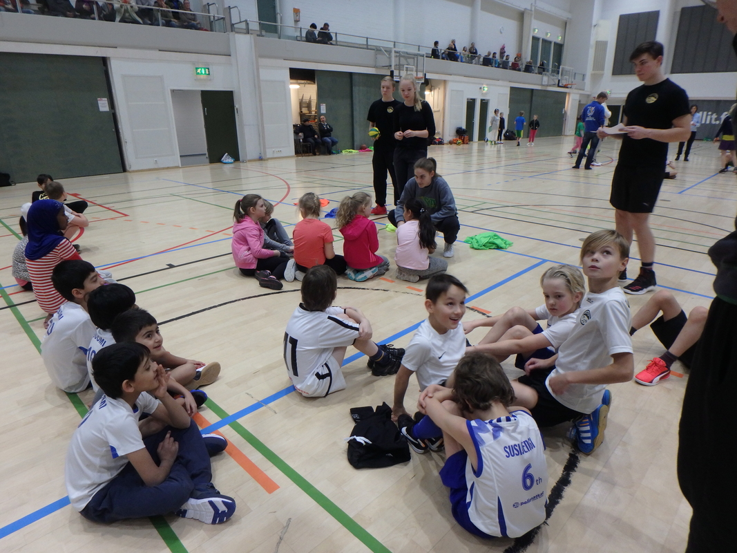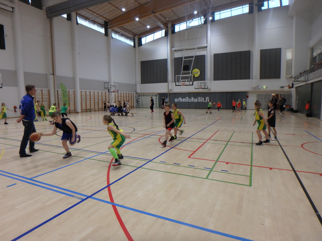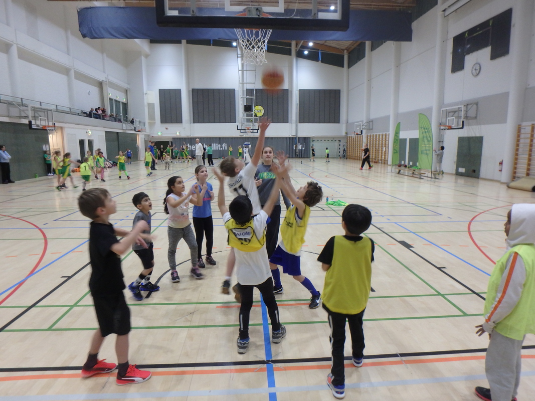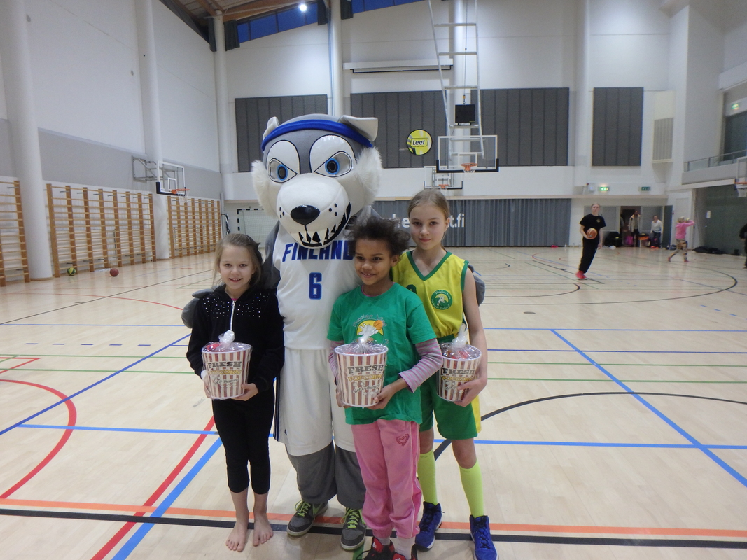 Pakilan Visan juniorikoripalloilijat kokoontuivat sankoin joukoin viettämään urheilullisia pikkujouluja Mäkelänrinteen uintikeskukseen. Joukkueet jaettiin 3-4 pelaajan joukkueisiin ja sitten alkoi melkoinen hulina! Viidellä kentällä pelattiin suomalaista katukorista eli 3 vs 3 parkettilattialla. Joukkueet olivat keksineet hauskoja nimiä itselleen, kirmasihan kentällä Team Unicorn, Parhaat, Kirahvit jne. Jopa Visan salibandypoikia saapui paikalle pelaamaan koripalloa. Vaikka otteluissa laskettiin korit ja lopputuloksetkin, oli hauskinta varmasti yhdessäolo ja kova yrittäminen. Vanhemmat ja isovanhemmat ihastelivat katsomossa mitä kaikkia temppuja ja taitoja oli syksyn harjoituksissa opittu. Paikalla kannustamassa oli myös kunniavieras suoraan Suomen korismaajoukkueesta eli itse joukkueen Susi-maskotti, jonka kainalossa saatiinkiin hyviä kuvia. Heittokisan voittajat herra Susi palkitsi popcorn-herkkukoreilla oikein Amerikan malliin. Hikisten pelien jälkeen oli mukava mennä pulikoimaan uudistettuun Märskyn uimahalliin. Yksi syyskausi oli taas saatu pakettiin ja alkoi niiden toisten pakettien odottelu. |