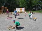 Neljä Pakilan Visan joukkueista päätti kautensa yhteisesti SVK:n salissa ja pihamaalla. Vaikka osa pelaajista olikin jo kirmannut kesälaitumille pidettiin noin 60 lapsen ja aikuisen voimin iloiset päättäjäiset. Ohjelmassa oli koripallon lisäksi heittokisoja, pihapelejä, herkuttelua ja palkitsemisia. Aurinkoisessa säässä oli hyvä kääntää katseet jo kohti tulevaa kesää. Joukkueiden sisäharjoitusvuorot jatkuvat taas koulujen alkaessa. |