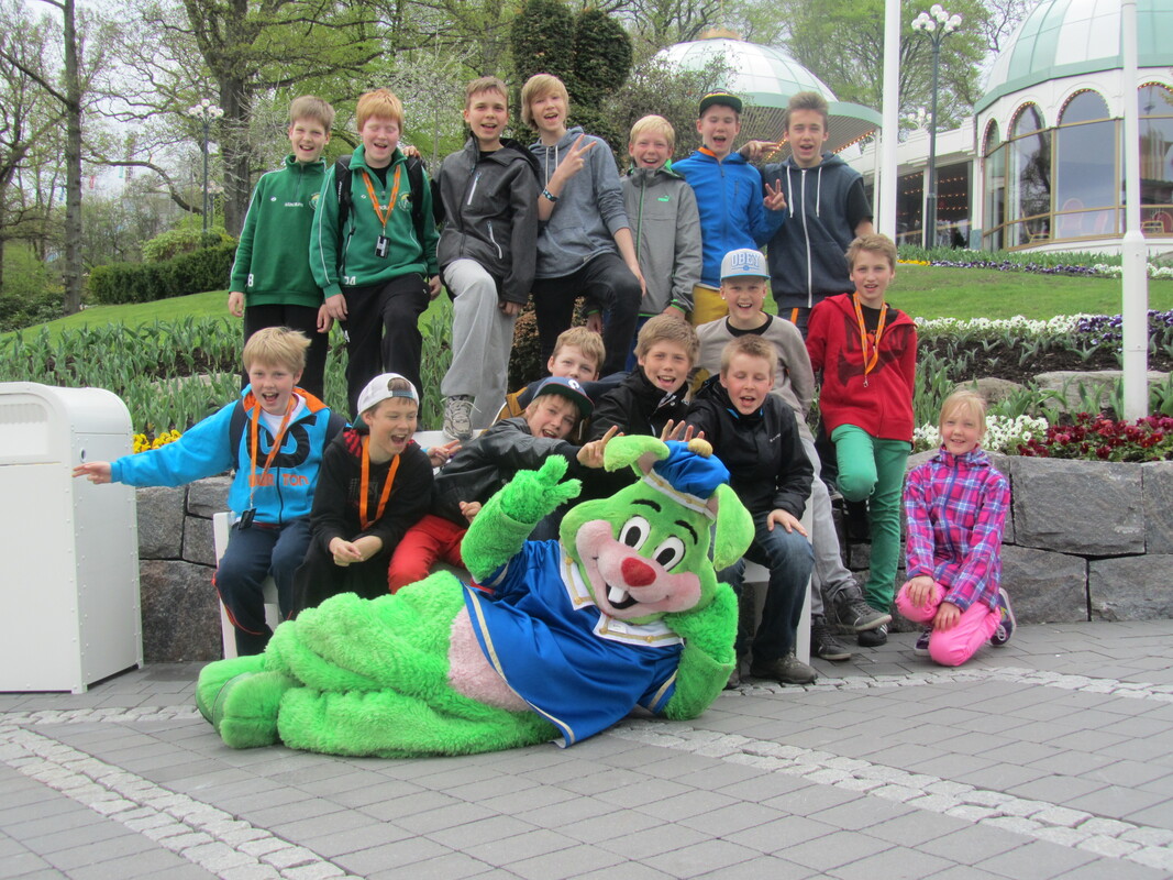 Euroopan suurin juniorikoripalloturnaus pelattiin jo 35. kerran Göteborgissa 9.-12.5. Pakilan Visan C-poikien joukkueet Giraffes ja Okapis taistelivat molemmat kaksi voittoa sijoittuen 36 joukkueen sarjassa puolen välin molemmin puolin. Todellinen voittoputki joukkueen pojille sen sijaan avautui päätöspäivänä Lisebergin huvipuistossa, jossa koriinheittokilpailujen ja suklaaonnenpyörien jälkeen tuliaisina oli kymmeniä kiloja karkkia ja hupaisia jättipehmoleluja! Giraffes joukkueen matka alkoi synkissä tunnelmissa. Joukkueen pisin pelaaja Noel ei noussutkaan koneeseen, vaan kärsi jalka kipsattuna Lastenklinikalla scoottaus-onnettomuuden jälkeen... Sentterihommat jäivät nyt vasta vajaan vuoden pelanneiden Eikan ja Kriden harteille. Ja hyvin herrat postinsa hoitivatkin. Ville, Niilo ja Kuutti mursivat skandinaavisten vastustajiensa prässin ja pyörittivät peliä mallikkaasti onnistuen myös läpiajoissa. Eemeli nousi takamiehenkin tontilta taistelemaan levypalloista pitkien miesten keskelle ja Allu osoitti olevansa turnauksen tarkin levyn kautta kaukoheittäjä. Näillä meriiteillä Giraffes-joukkue yllätti iloisesti ja suoriutui alkulohkonsa kakkoseksi ja A-finaaleihin! Siellä seinä tuli kuitenkin vastaan, kun taitava norjalaistakamies pelasi 7 viimeistä minuuttia viidellä virheellä (!) ja hoiteli voiton vuonojen maahan. Jatkopeli Skotlannin maajoukkuetta vastaan jäi tällä kertaa haaveeksi. Okapi-joukkueen alkulohko oli varmastikin sarjan tasaisin. Deniz dominoi korinalustoja molemmissa päissä, Marek ja Matias toimittivat pallon ylös pomminvarmasti, Jolle intoutui näyttäviin sentteriliikkeisiin, heittokone Sasha kunnostautui tällä kertaa myös puolustuksessa. Walle, Jaakko ja Oskari väläyttelivät syöttötaidollaan ja hyvällä puolustusasenteella. Alkulohkon kolmostilalta joukkue ponnisti B-finaaleihin, joissa ensin tuli riemastuttava voitto, mutta sitten paikallisen Lundbyn joukkueen aasialaiskaksikko lopetti Okapien taivalluksen. Vapaa-ajalla c-pojat kunnostautuivat tölkkien dyykkaajina, korttipeleissä, Hemköpin kanta-asiakkaina myymälävarkaiden keskellä, Disko-Fiatin laulajina ja ohikulkijoiden viihdyttäjinä, ruokalan muusikoina (ohjelmistossa Bellmannia pianolla) ja lopulta Lisebergin huvipuiston palkintopöytien tyhjentäjinä. Reissusta jäi kaikille varmasti pölyä keuhkoihin koulun lattialta, uusia kikkoja peleistä, univelkaa, kylmägeelillä voideltuja ruhjeita ja enemmän tai vähemmän hauskoja vitsejä, mutta ennenkaikkea paljon hyviä vuosien päähän yltäviä muistoja hienon jengin kanssa tehdystä matkasta! Tarkempi matkakertomus ja lisää valokuvia tulossa lähipäivinä poikien omille sivuille. |