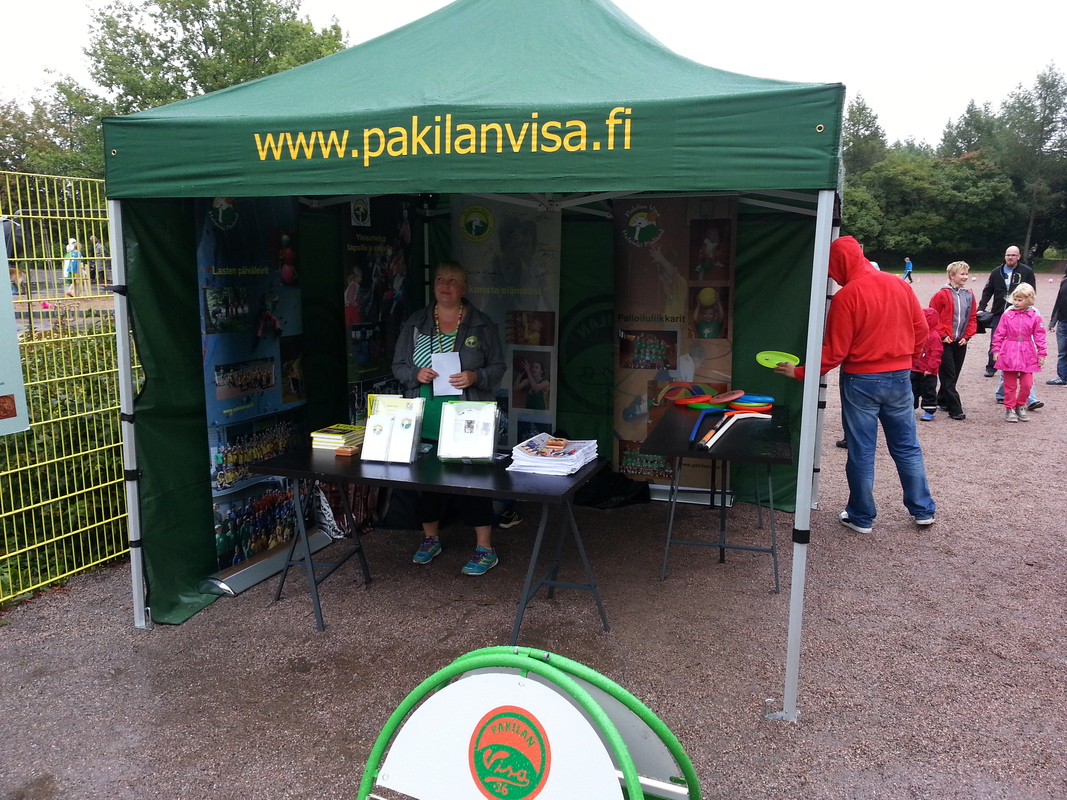 Pakilan Lions-Club oli kutsunut paikallisia järjestöjä ja yrityksiä esittelemään toimintaansa leijonien kylätapahtumaan. Paloheinän koululla ja koulun ympäristössä järjestettyyn tapahtumaan osallistui myös Pakilan Visa. Visan esittelyteltalla kävikin päivän aikana satoja perheitä tutustumassa seuran toimintaan. Lisäksi paikalla oli mahdollisuus osallistua lasten liikunnalliselle taitoradalle, sekä kokeilla mm. oman salibandylaukaisun nopeutta laukaisututkan avulla. Myös lasten koriinheittopaikka keräsi paljon yrittäjiä. Paikalla ollut seuramme tunnuseläin kirahvi jakeli liikuntatouhuilun lomassa seuran kirahviheijastimia lapsille. |