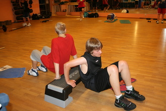 Lauantai-iltana osa pojista tutustui vastakkaisen sukupuolen edustajiin kisadiscossa ja muut pojat harjoittelivat keskenään majoituskoulun salissa heittoja.