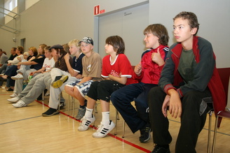 Lauantai-iltana osa pojista tutustui vastakkaisen sukupuolen edustajiin kisadiscossa ja muut pojat harjoittelivat keskenään majoituskoulun salissa heittoja.
