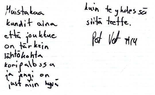 Tommi A: joukkueen "riistäjä", loistava pelisilmä. Sai tsempparin aluefinaaleista.