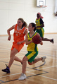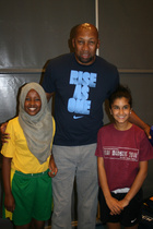 Naisten maajoukkuetähti Henna Salomaa ja entinen NBA-pelaaja Bernard Harris B-ikäisten koristreeneissä
