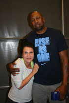 Naisten maajoukkuetähti Henna Salomaa ja entinen NBA-pelaaja Bernard Harris B-ikäisten koristreeneissä