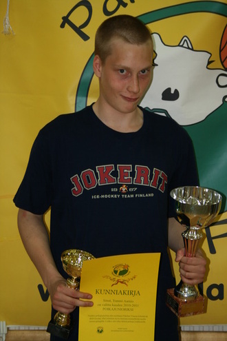 | Vuoden nuori valmentaja: Vuoden nuori valmentaja on omalla panoksellaan edistänyt seuran kasvua. Hän on lisäksi esimerkillisellä tavalla ottanut vastuuta nuoremmista junioripelaajista. Hän on lisäksi ollut kiinnostunut kehittämään itseään ohjaajana. |