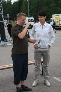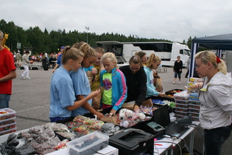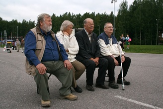 - Historiakirjan kirjoittaja Ossi Viita ja historiatoimikunnan jäsenet infotiskin kirjamyyntipisteessä haastateltavana