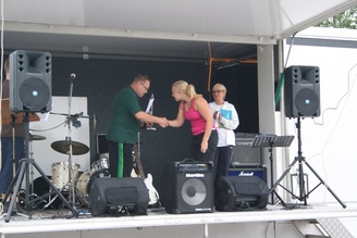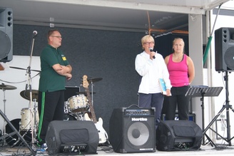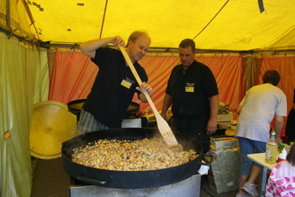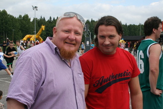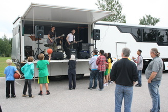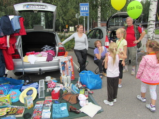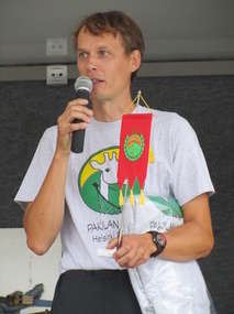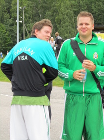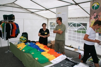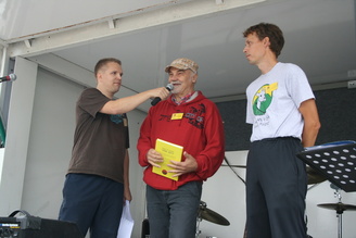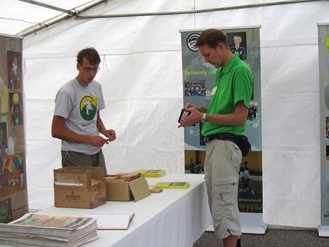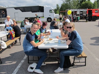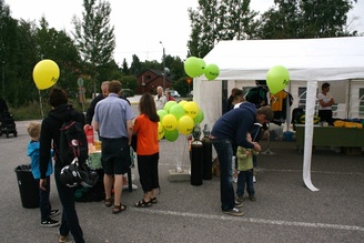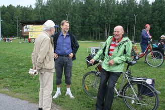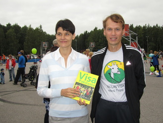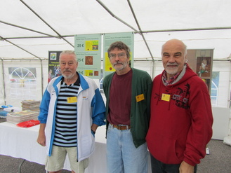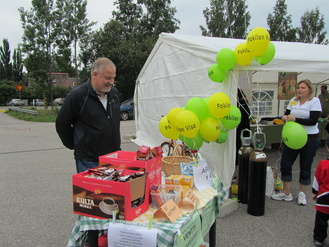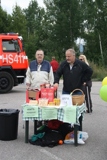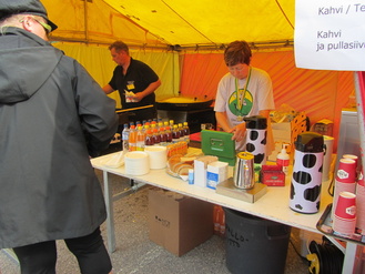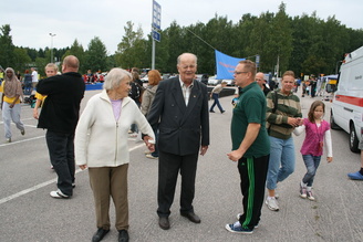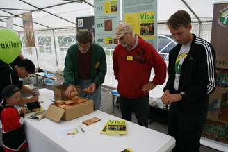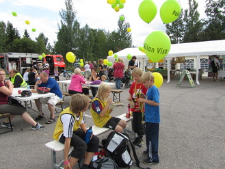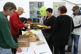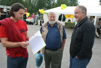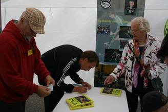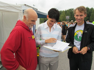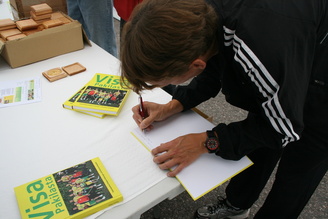 - Historiakirjan kirjoittaja Ossi Viita ja historiatoimikunnan jäsenet infotiskin kirjamyyntipisteessä haastateltavana